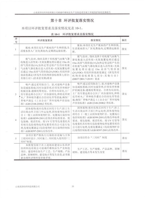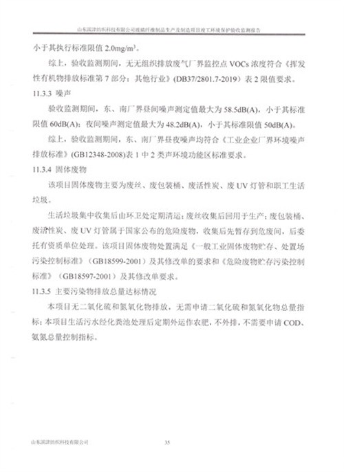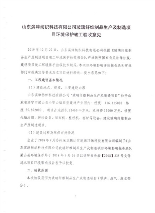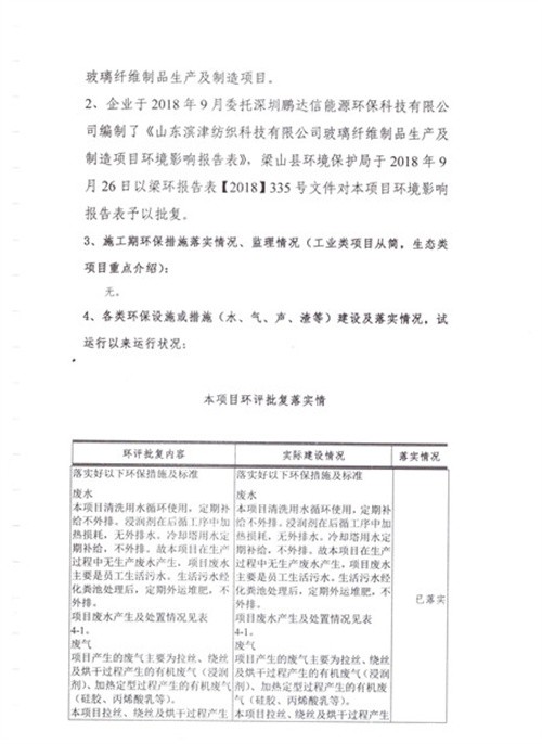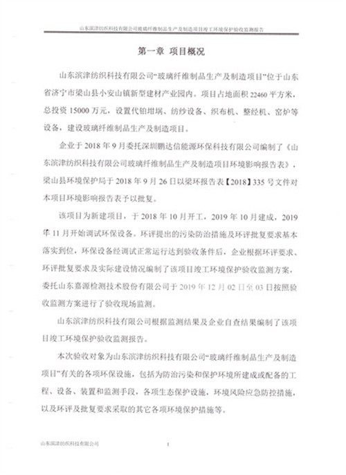 玻璃纤维制品生产及制造项目竣工环境保护验收报告
