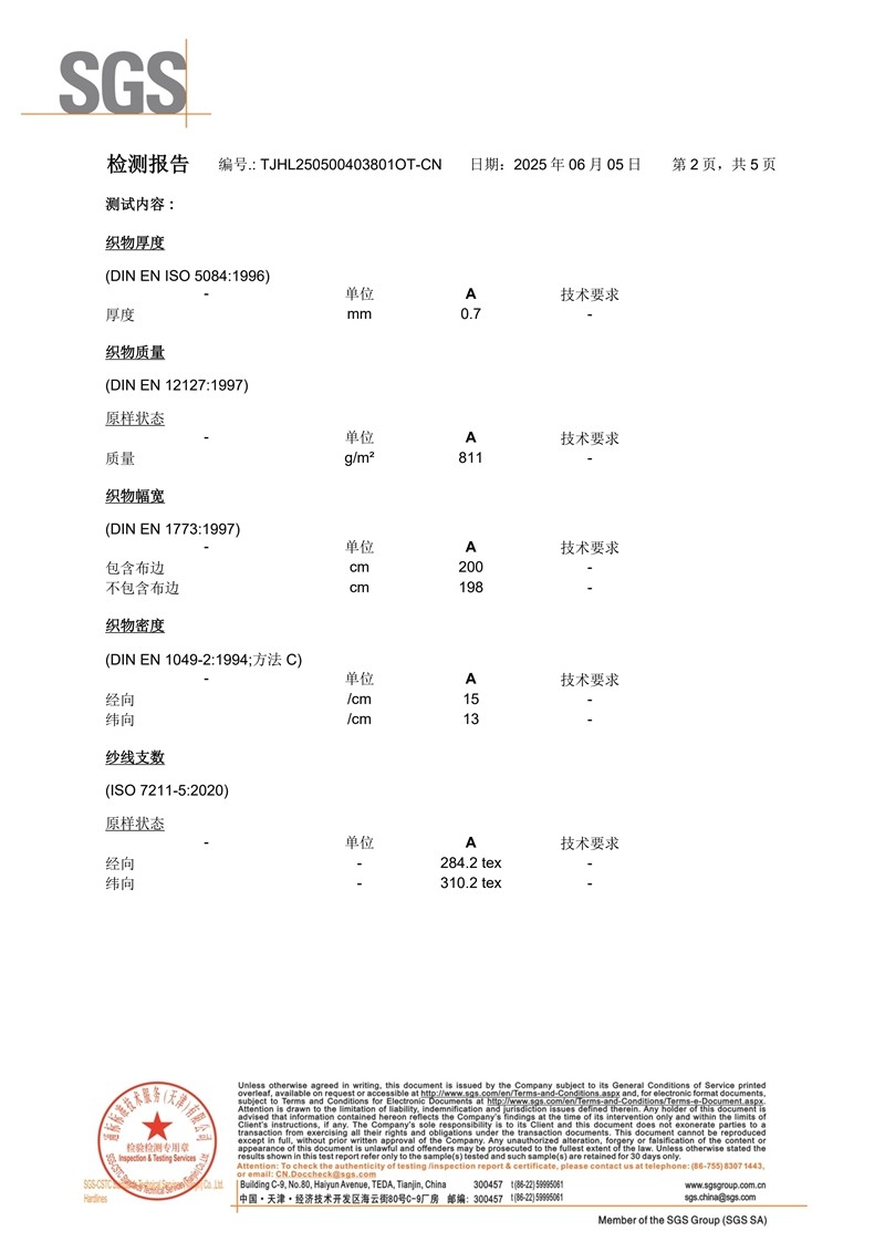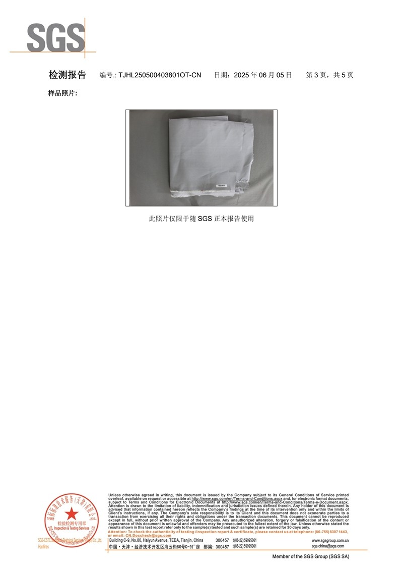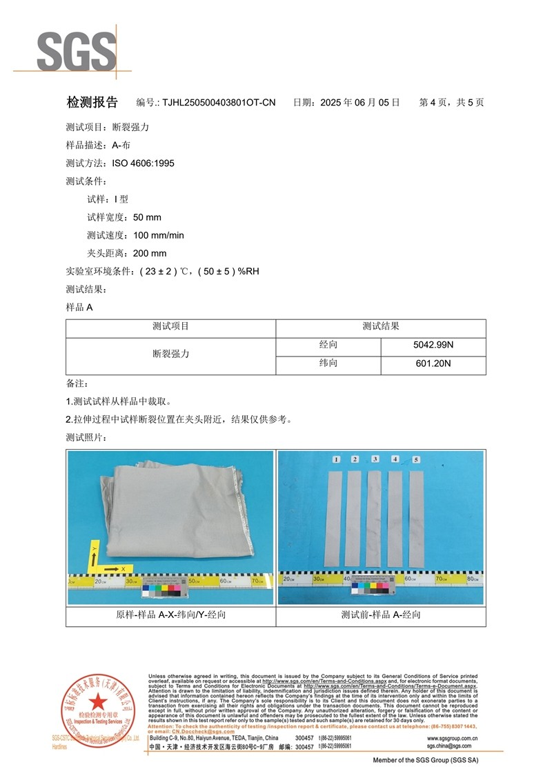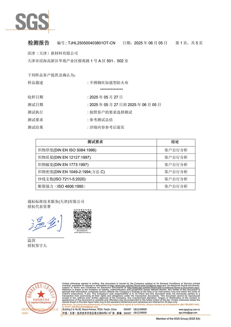 不锈钢丝加强型防火布SGS英文版