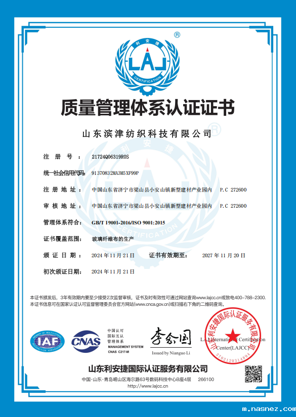 质量管理体系认证证书